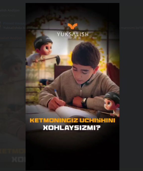 Yaxshi yangiliklar oldinda. E’tiboringizni bizdan uzoqlashtirmang! Farzandingizni Yuksalishga olib keling!